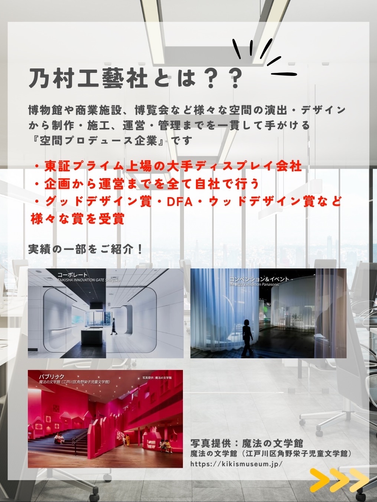 ディスプレイ業界について【乃村工藝社】から話を聞いてみよう!空間を作るのは意匠設計だけじゃない⁉️展示や空間演出を企画するディスプレイ業界を代表する乃村工藝社で実際に働く社員さんからお話を聞いちゃいましょう☺️空間に関する職に就きたい❗️進路の幅を広げたい人❗️そんな人におすすめの企画です💪